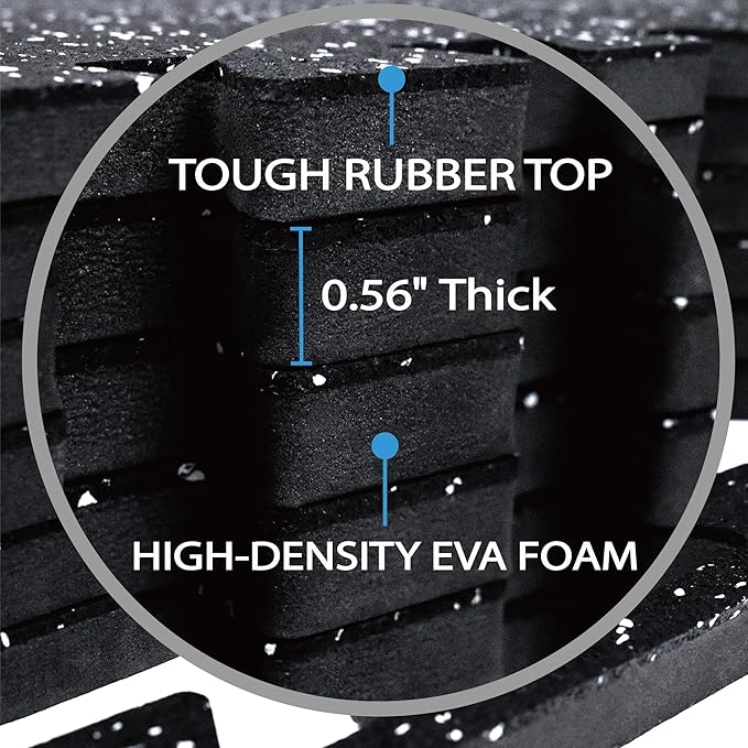 - Comfort and Support: The soft and resilient EVA foam layer ensures a comfortable exercising experience by effectively absorbing impact during workouts. It protects joints and floors from damage while minimizing noise.