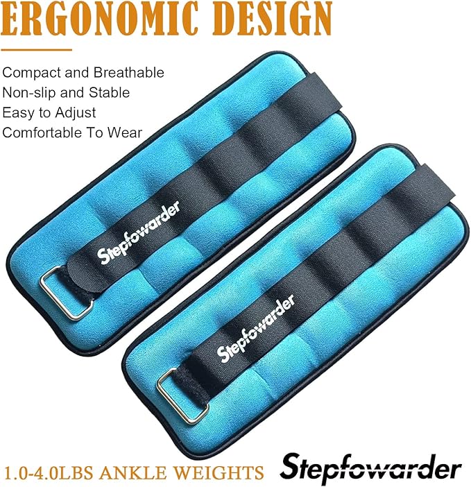 - 💪 Stepfowarder WEIGHTS: 2×1,0Lbs -pink, 2×2,0 Lbs-purple, 2×3,0 Lbs-blue, 2×4,0 Lbs-black, 4 weights & colors provide choices that suits your requirements, Please choose 1,0 Lbs for children, 1.0-2,0 Lbs for women and all weights for men.