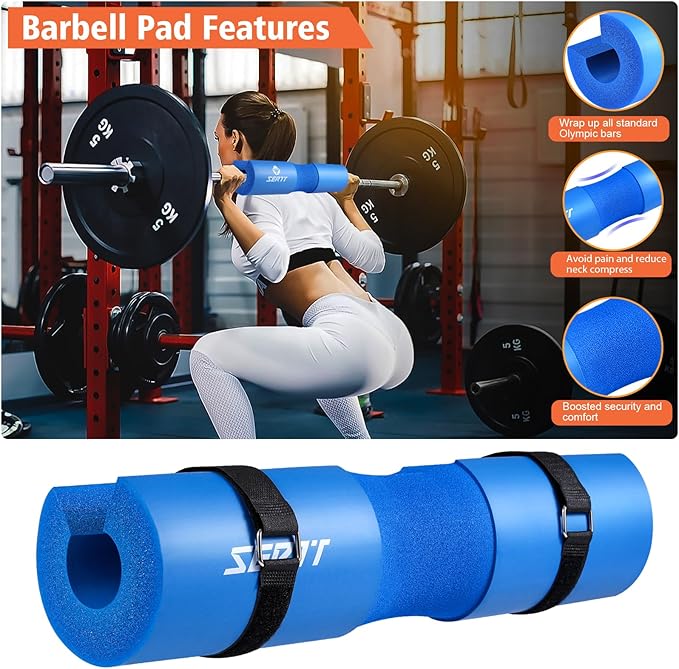 - Gym Barbell Pad Features: SERTT gym bar pad is made of high-quality, high-density foam which has been designed to distribute weight evenly across your shoulders and relieve you of any neck pain during squats.