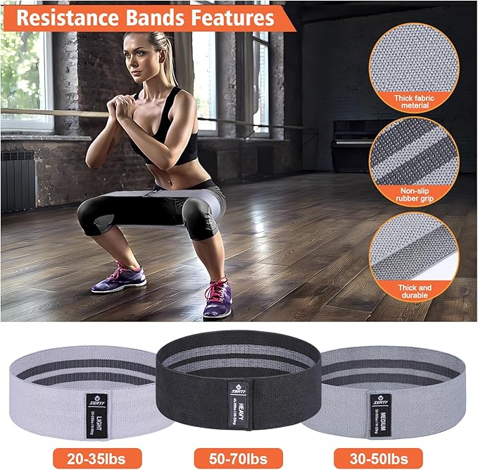 - Hip Resistance Band Features: There are 3 different levels of resistance namely Light, Medium and Heavy. Never worry about the hip bands being too stretchy or too small. Beisides, those exercise bands can help you with in a variety of workouts and Indoor and outdoor activities, including yoga, pilates, office sports, beach body workouts and more.