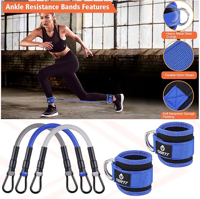 - Ankle Resistance Bands with Cuffs Features: The ankle resistance bands with 3 resistance levels (10/20/30 lbs) that allow you to customize the intensity of your workout. The ankle straps are equipped with straps that can be easily adjusted to fit different ankle sizes to ensure a secure and comfortable fit. This combination provide a versatile solution for working out various muscle groups, including the legs, buttocks, and hips.