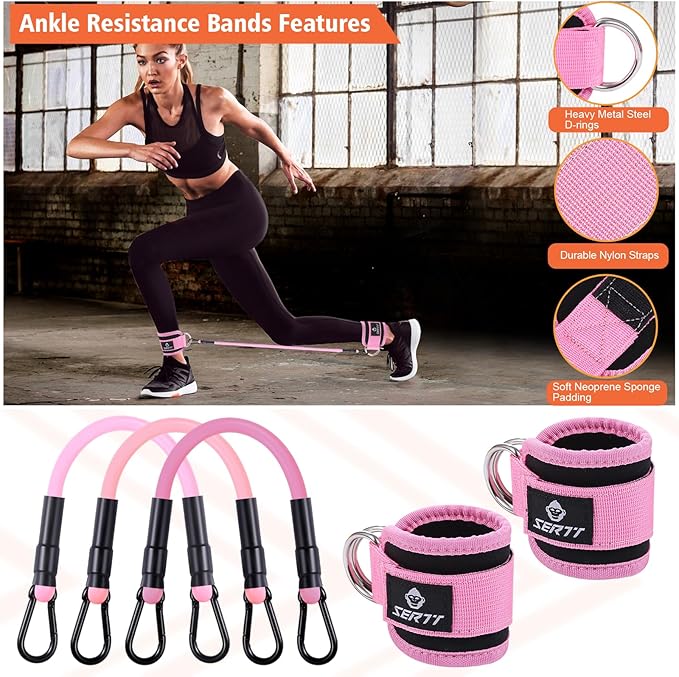 - Ankle Resistance Bands with Cuffs Features: The ankle resistance bands with 3 resistance levels (10/20/30 lbs) that allow you to customize the intensity of your workout. The ankle straps are equipped with straps that can be easily adjusted to fit different ankle sizes to ensure a secure and comfortable fit. This combination provide a versatile solution for working out various muscle groups, including the legs, buttocks, and hips.
