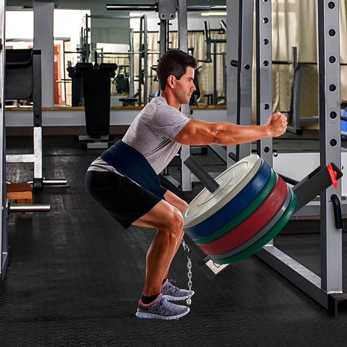 - 4Space Saver:When you're not using a belt squat attachment, you can prop it up anywhere, even on the rack. It takes up very little space and you can continue to perform other exercises on the rack.