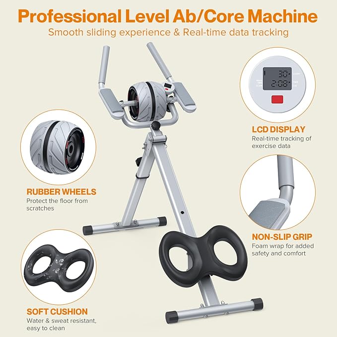 - Upgraded Ab Workout Machine: On the basis of the ordinary abdominal machine, our 2-in-1 new upgrade ab workout equipment added a separate detachable ab roller with elbow support. Equipped with an electronic watch that tracks your workout data in real time, even when using the ab wheel alone