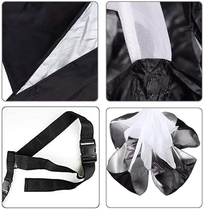 - 【Adjustable Belt】This resistance parachute is with adjustable waist sizes 20-42 inches, the belt can rotate 360 degrees and you can sprint in any direction.