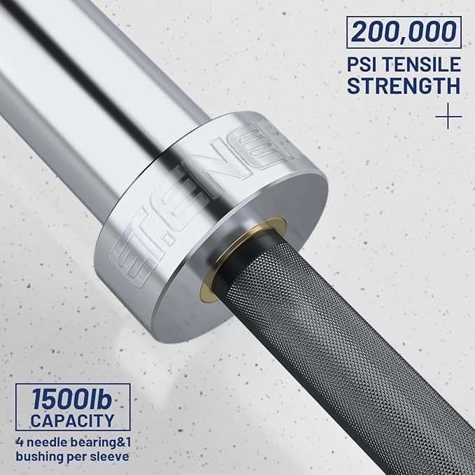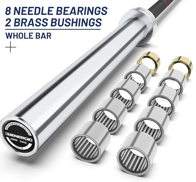 - [Needle Bearing & Sleeves] The sleeves of barbells are often constructed with either bushings or bearings. Our Olympic bar sleeves are friction welded, it's stronger than normal welding sleeves. Each of the rotating sleeves with 4 needle bearings and one bushing, totally 8 needle bearings in the bar. Bushings provide a moderate rotation, bearings on the other hand are designed to spin fast and match the catching needs of the snatch and clean & jerk