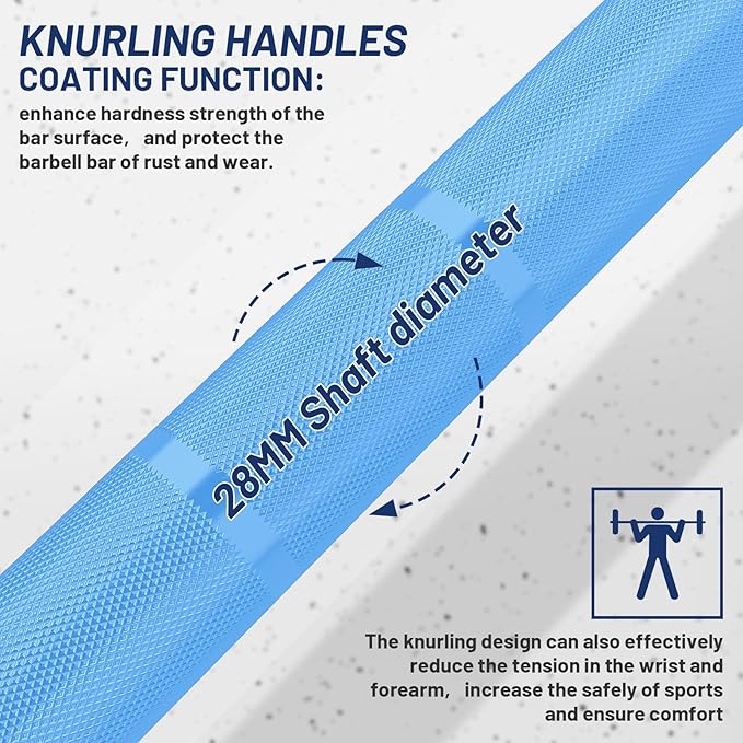 - Knurled Grip for Safety: A 28mm grip diameter with medium knurling provides a secure, non-slip hold for demanding weightlifting and powerlifting exercises