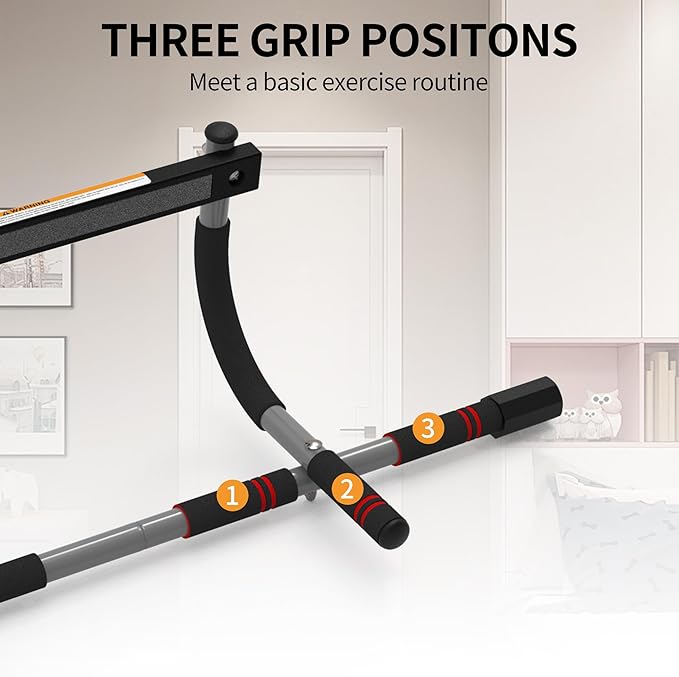 - 💪 HEAVY DUTY & SAFE: Made of high-quality alloy steel and with a fine powder coating, this pull up bar ensures extra safety and can hold up to 300lb. The handles are coated with high fiber foam for a comfortable grip, anti-slip, and wear resistance.