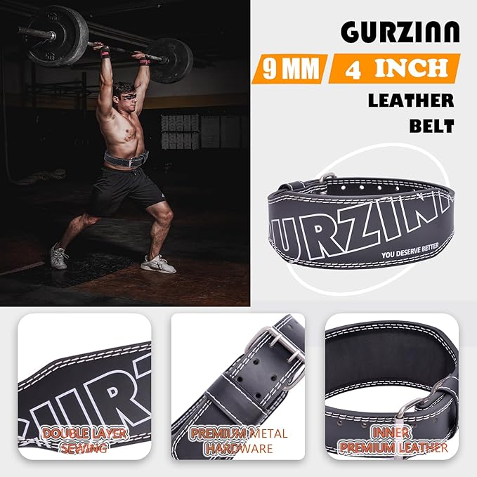 9mm Leather Fitness Weight Lifting Belt for Women&Men 4 Inches