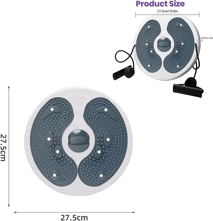 - Upgrade Design:The twist board exercise with 3D magnetic massage acupressure board that can activate the acupuncture points on the soles.The size of ab twister machine is 27.5 * 27.5 * 3 cm / 10.8 * 9.84 * 1.18 inches. Biggest bear weight:120KG(264 lb).
