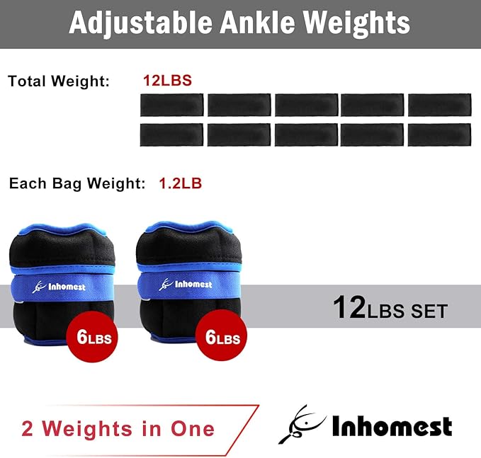 - Adjustable weight with removable weights: 5 individual sandbags in each pack, each bag weighs 1.2 lbs, total weights can be adjusted from 1-12 lbs PAIR for increased resistance. Allowing you to comfortably build muscle and tone your legs whether you are a starter or pro, women, men or kids.