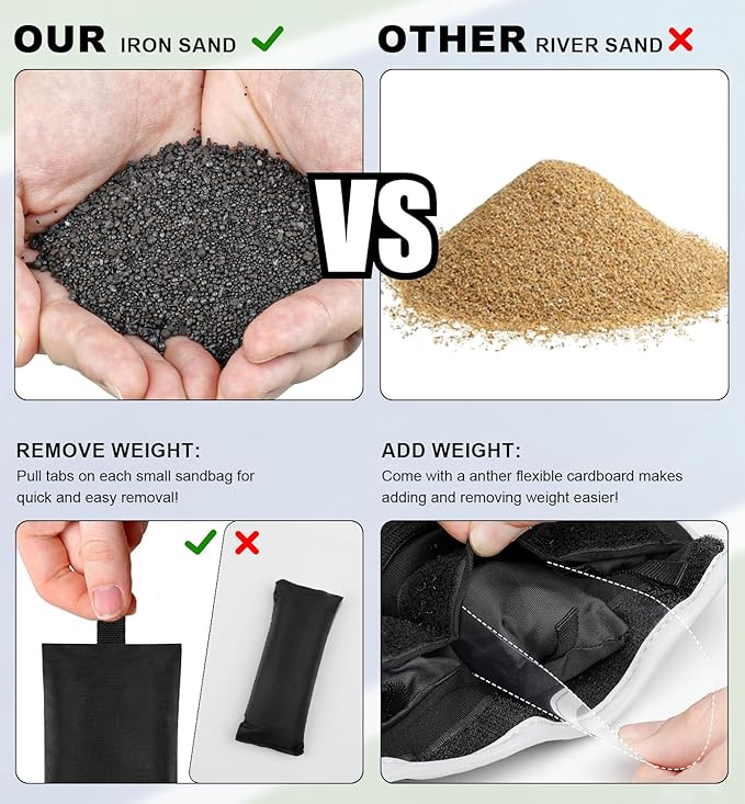 - [UPGRADE Feature 2]: (REMOVE WEIGHT)Our leg weights for women adjustable with pull tabs on each small sandbag for quick and easy removal! (ADD WEIGHT)Come with a anther flexible cardboard makes adding and removing weight easier!