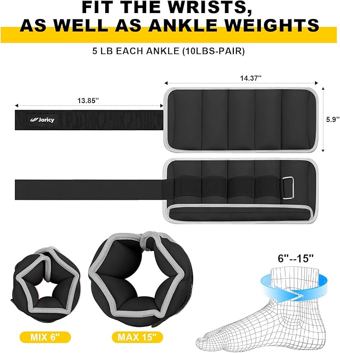 - [UPGRADE Feature 3]: (ABOUT 14.17 inch)Elongated design to make your ankle and wrist feel smooth and comfort, 5 pound ankle weights each customized fits ankle/wrist/arm/leg/hand, super easy to put on and take off.