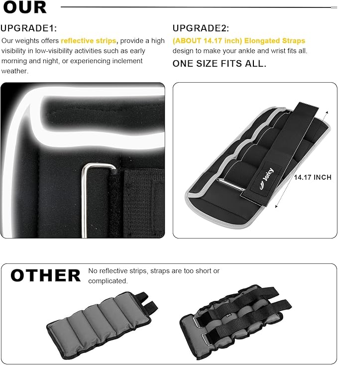 - [UPGRADE Feature 1]: Our leg weights for women offers reflective strips details across the surroundings. Providing you a high visibility in low-visibility scenes and activities such as early morning and night, or experiencing inclement weather.
