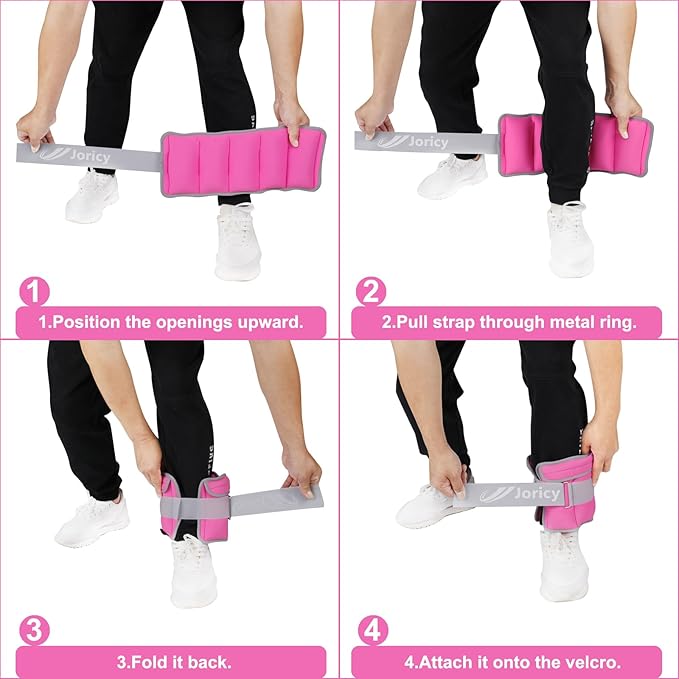 - Adjust ankle weights: 5 individual removable sand pockets for each ankle weight, each pocket weighs 0.5 lbs, total weights of a pair (each ankle weights 2.5 lbs) can be adjusted from 1-5 lbs by adding or taking out the inserts.