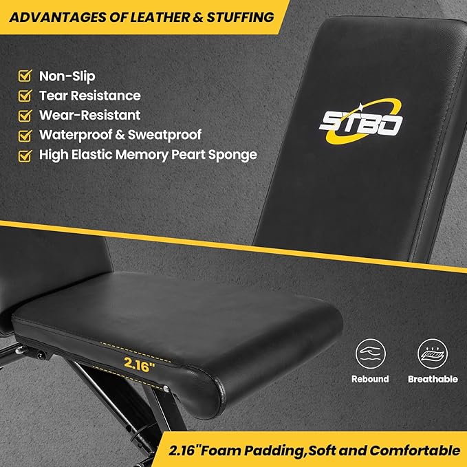 - 【COMFORTABLE & ERGONOMIC DESIGN】 : Comfortable 2.2" With high-density foam padding and seat secure body firmly and reduce muscle fatigue when you do full body workout.
