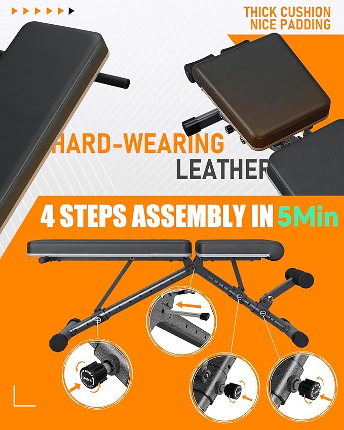 - EASY ASSEMBLY: 5-MINUTE SETUP: From unpacking to a fully assembled product, the incline bench's a breeze in just 5 minutes. Simply open the packaging and securely tighten a few screws, following the provided instructions. Remember, avoid shaking issues by ensuring all screws are tightened properly.