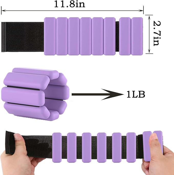 - 【Quality Material】Our adjustable silicone leg weights bracelets 1 pound each (2 lbs per pair) are crafted from the highest quality fitness materials, with steel wrapped in a soft silicone layer, offering both durability and comfort.