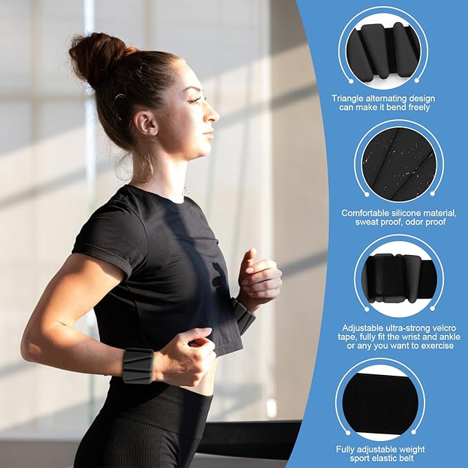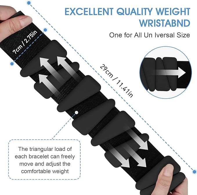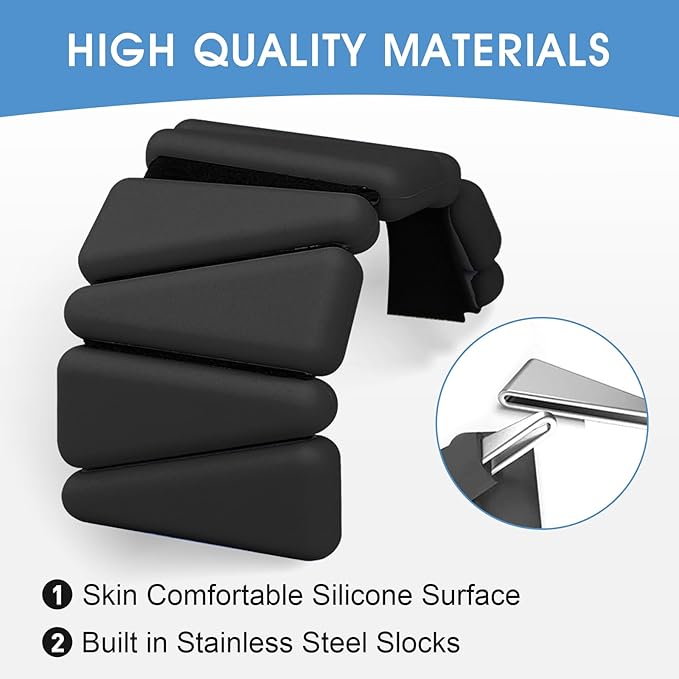 - 🏋EXCELLENT QUALITY: Our adjustable wrist weights sets made of durable and comfortable silicone material, sweat proof, odor proof. Triangle alternating design can make it bend freely, and the stainless steel material inside can ensure enough exercise load under the premise of free bending. Each triangle load can move freely, allowing you to adjust the weight of bracelets, you can remove a section load to create a better fit.