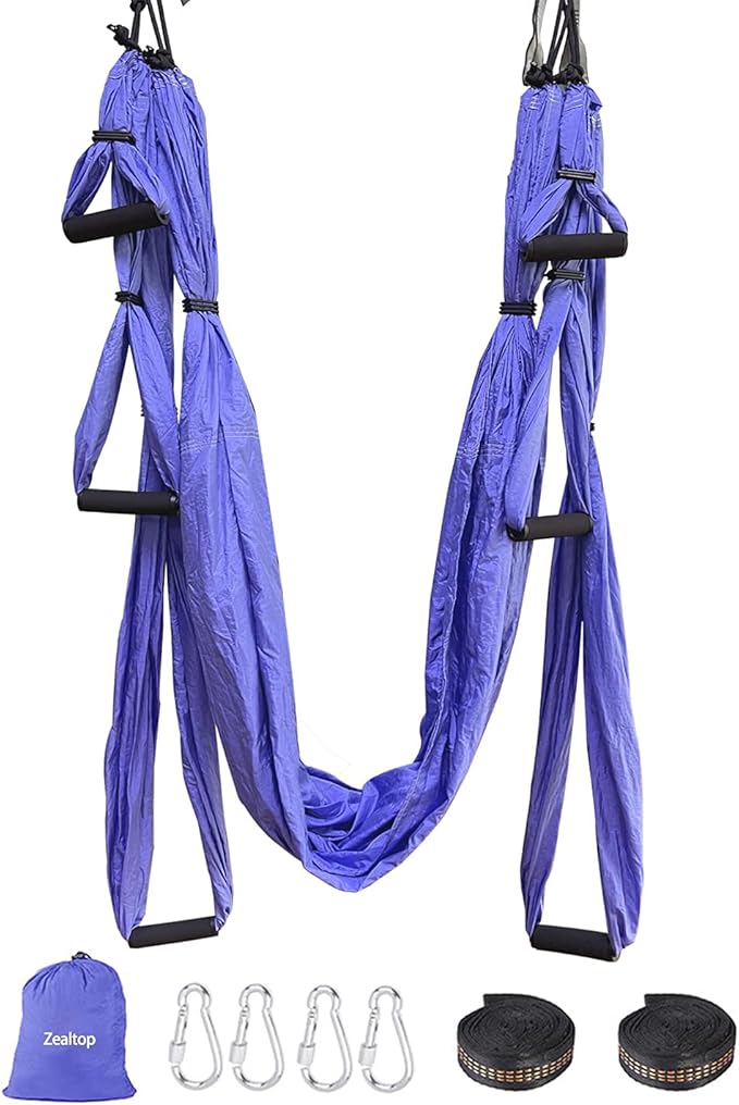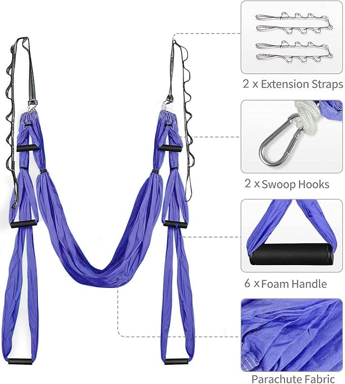 - 【Health Benefit】Our aerial yoga hammock helps to release the pain or pressure of neck, back and spine, enhance your hand strength by inversion therapy. The aerial silk is also a new innovative tool that gives the yoga enthusiasts a safe and fun way to keep fit and also the yoga sling is certainly a good way to take yoga to a higher fitness level.