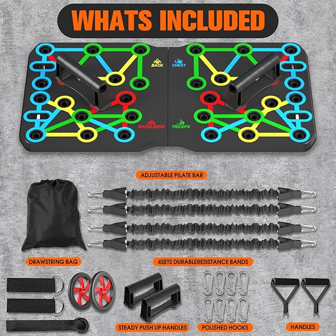 - Additional accessories: Contains push-up handles, Pilates sticks and resistance bands to increase the diversity and intensity of exercise and meet different fitness needs.