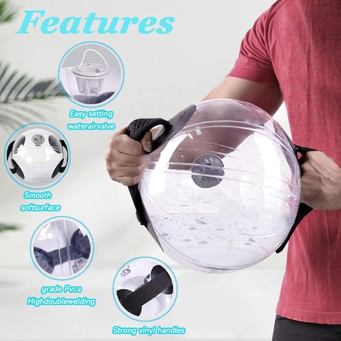 - ADJUSTABLE WEIGHT: Unlike traditional sandbags, customize the water volume in the aqua ball according to your training plan, you can gradually increasing the weight for progressive weight training. The exercise ball effectively trains athletes to become stronger and promotes muscle growth for fitness enthusiasts.