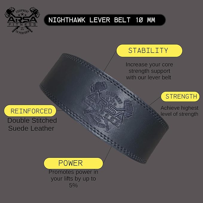 - THE PREMIUM 10MM THICK MICROFIBER LEATHER BELT YOU NEED: This Arsa Fitness power lifting lever belt features 10mm thick belt, with ample support for any lifter. This weightlifting belt will provide you with the highest amount of back support while maintaining your posture, and keeping your lifts at their maximum potential!.