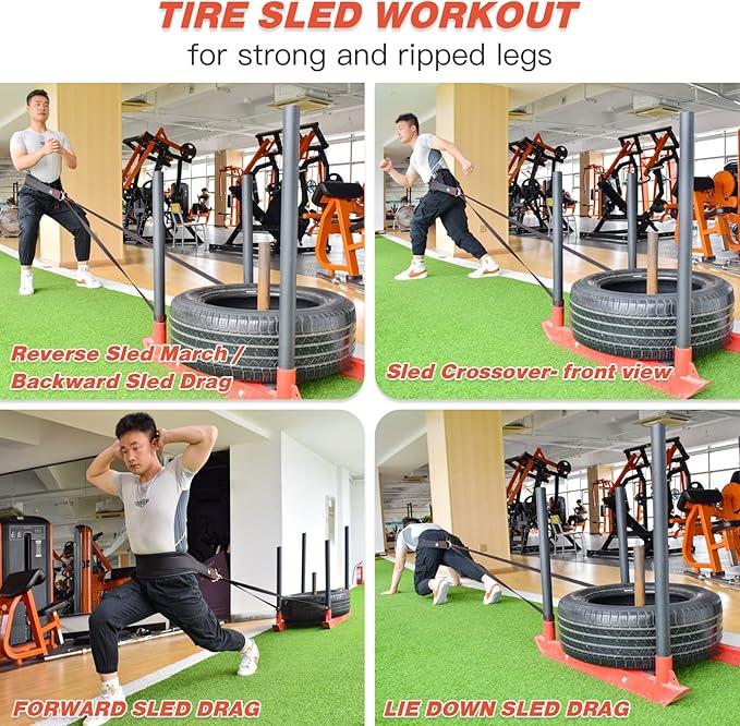 - 🏃♂️ A Full Body Workout : Works as a pulling workout, no matter what you pull, improve work on speed acceleration, speed, conditioning, and strength. In addition to working out on your hamstrings, quads and calves, weight pulling and resistance training are great exercises for a full body conditioning workout and will help you in building your core and lower body strength, improving speed and agility, sustaining your stability and balance, building muscle and much more.