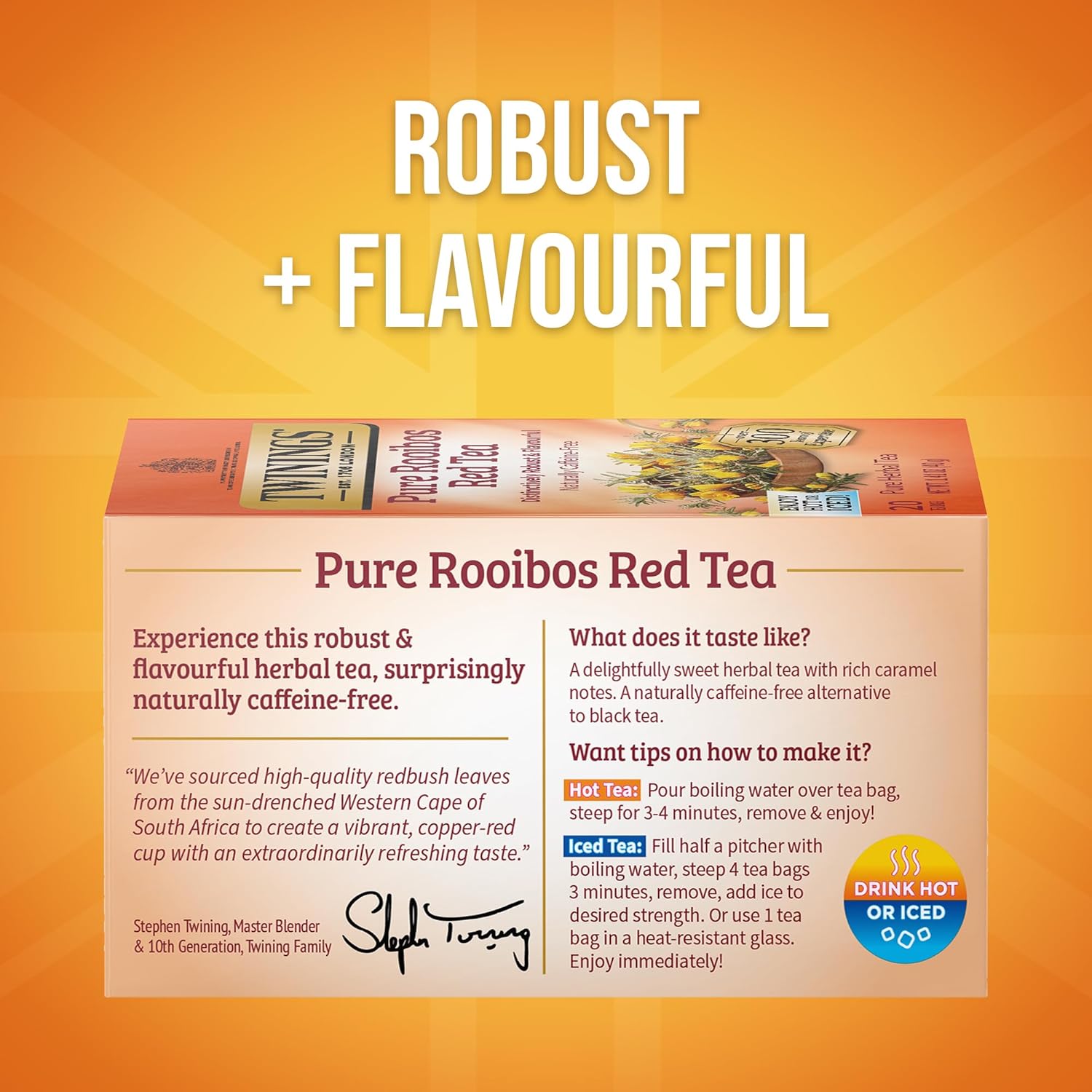 Twinings Pure Rooibos Red Herbal Tea Individually Wrapped Bags, 20 Count (Pack of 6), Sweet with Uplifting Aroma, Naturally Caffeine-Free, Enjoy Hot or Iced, 120 Teabags