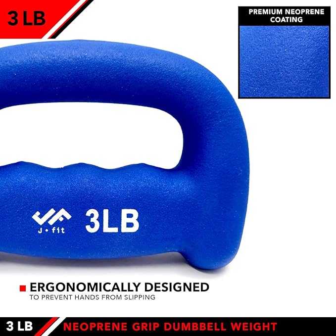JFIT Neoprene D Grip Dumbbells - Single Weights 1LB-5LB - Premium Non-Slip, Hand Weights, Ergonomic Design