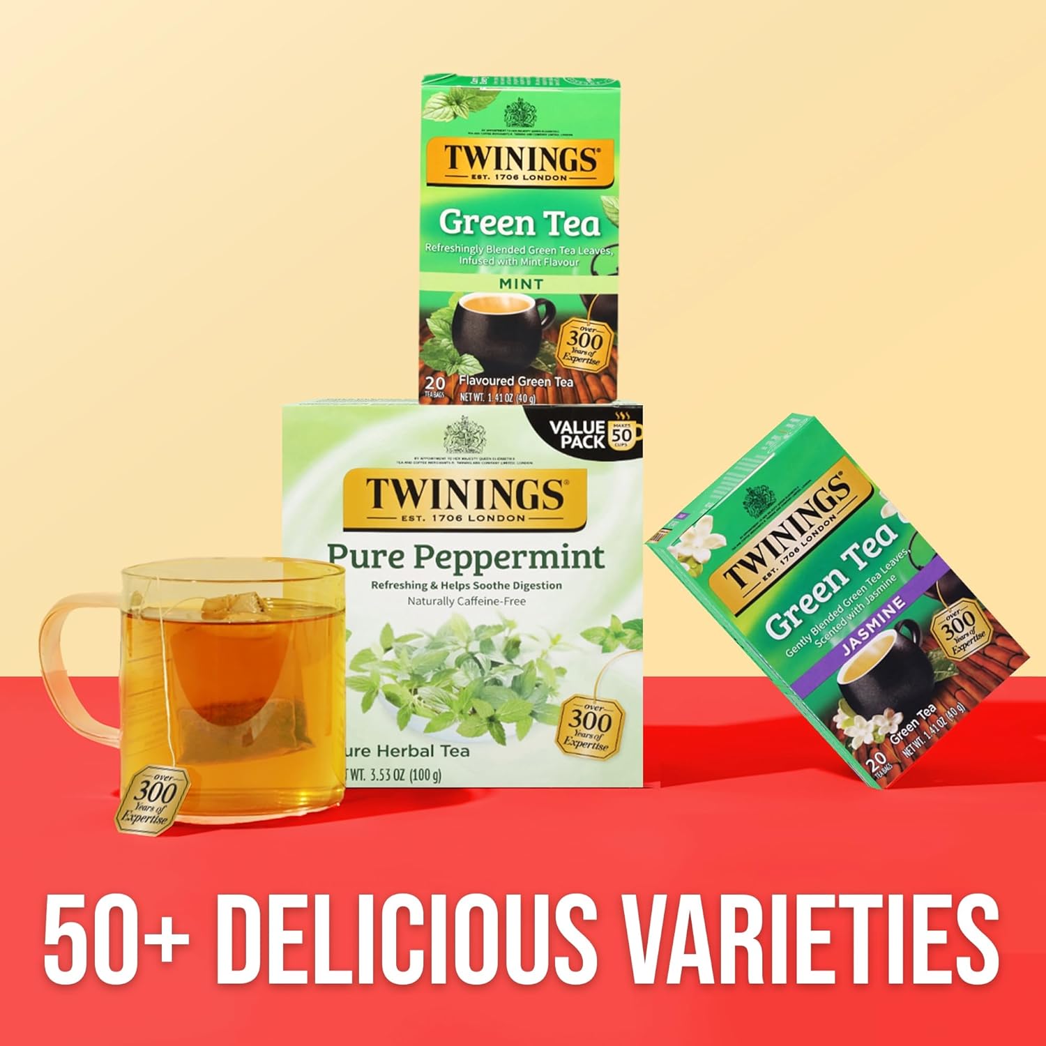 - SMOOTH MINT TASTE: Pure Green Tea expertly blended with the flavour of peppermint and spearmint to deliver a refreshing tea with an invigorating aroma and smooth mint taste; Caffeinated, 20 Count, Pack of 1