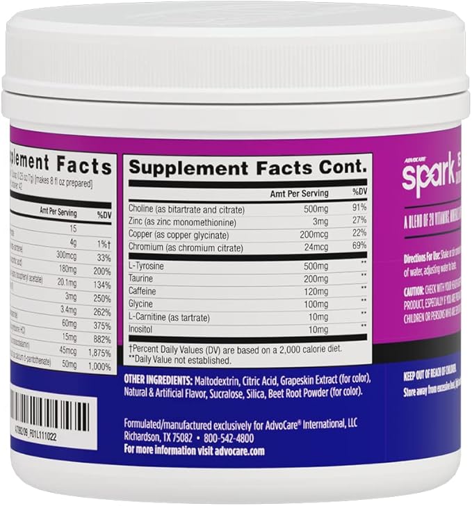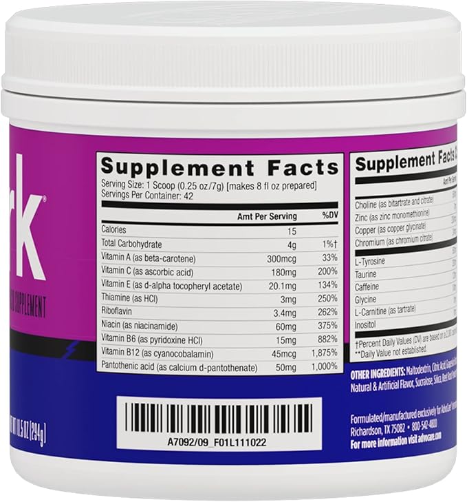 AdvoCare Spark Vitamin & Amino Acid Supplement - Focus & Energy Drink Powder Mix with Vitamin A, B-6, C & E - Also Includes L-Carnitine & L-Tyrosine - Grape - 10.5 oz