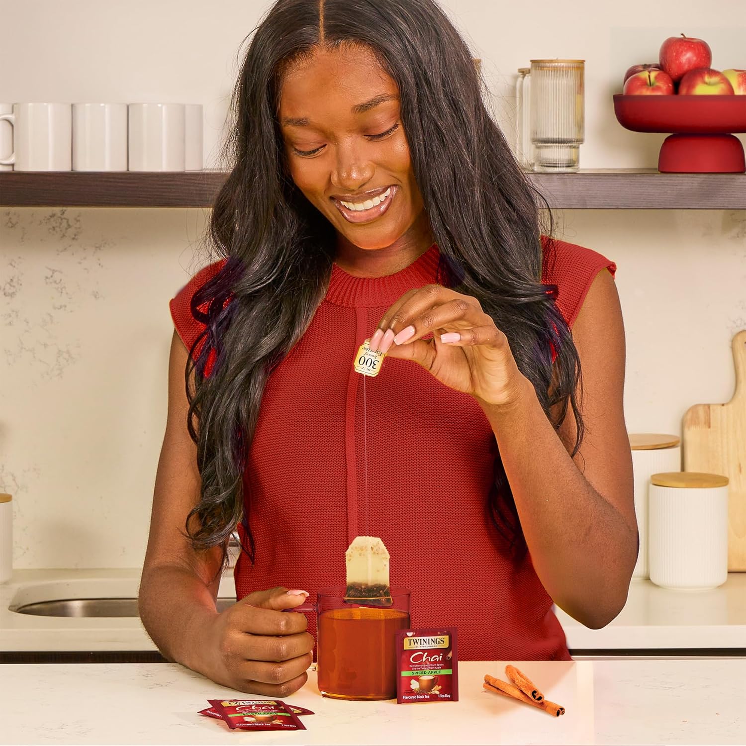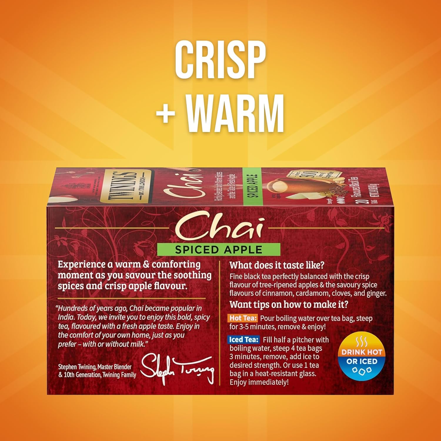 Twinings Spiced Apple Chai Black Tea Individually Wrapped Bags, 20 Count (Pack of 6), Sweet, Savoury Spices, Caffeinated, Enjoy Hot or Iced, 120 Teabags