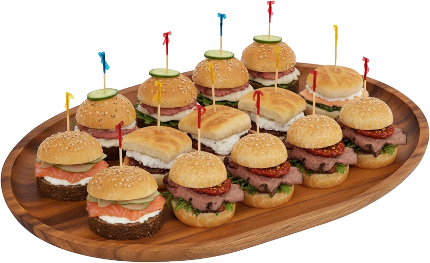 - SIZE: Our 10"W x 15"L, natural acacia wood, large oval tray is perfect for all of your entertaining and serving needs. Whether you are having a party at home of if you are a restaurant. Smaller, larger sizes and different finishes are available.