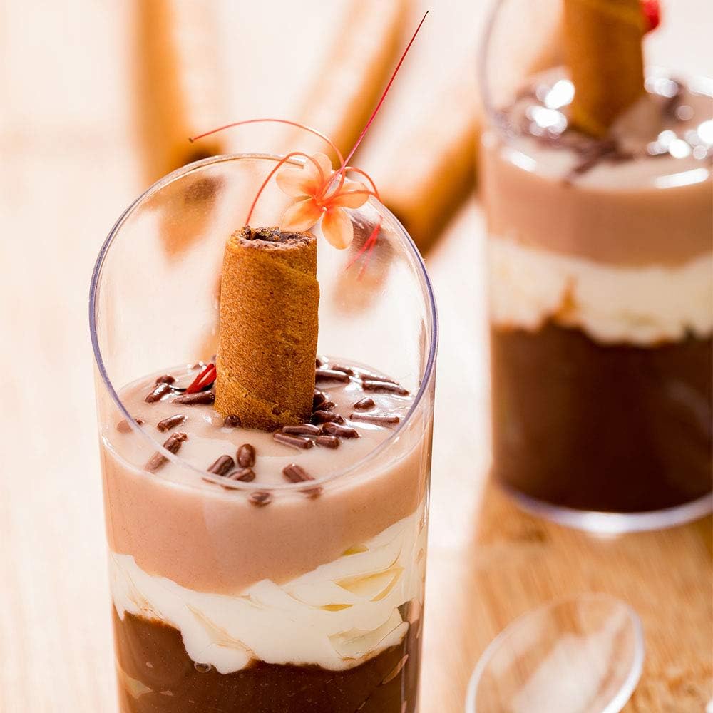 - SLEEK & UNIQUE: Add a touch of sophistication to your layered desserts, appetizers, or cocktails with these incline shot glasses with a unique sloping edge design. Elevate the presentation easily.