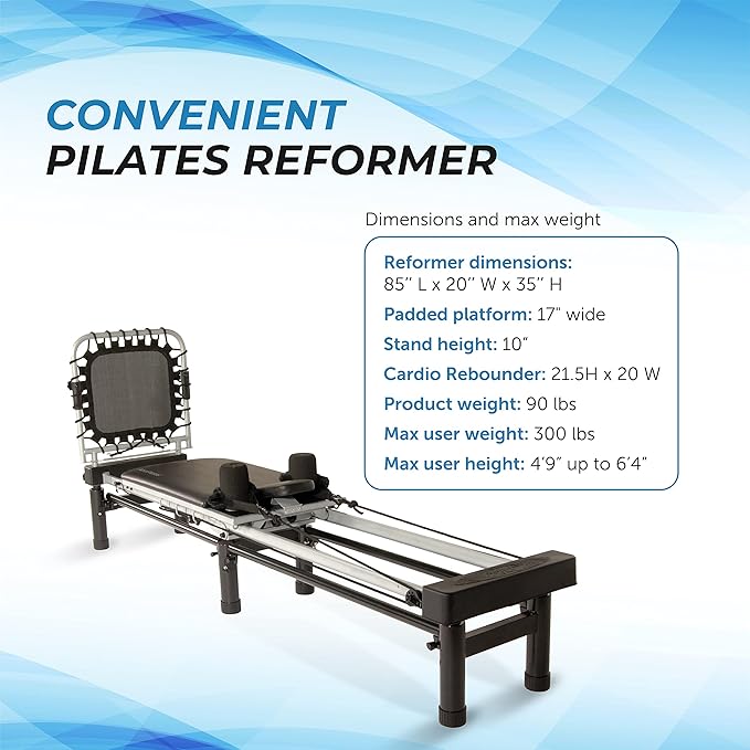 - Reformer for Pilates at Home: Provides an elegant system for total health; Studies show that pilates reformer workouts lead to weight loss, inches lost, increased strength, reduced stress, and more