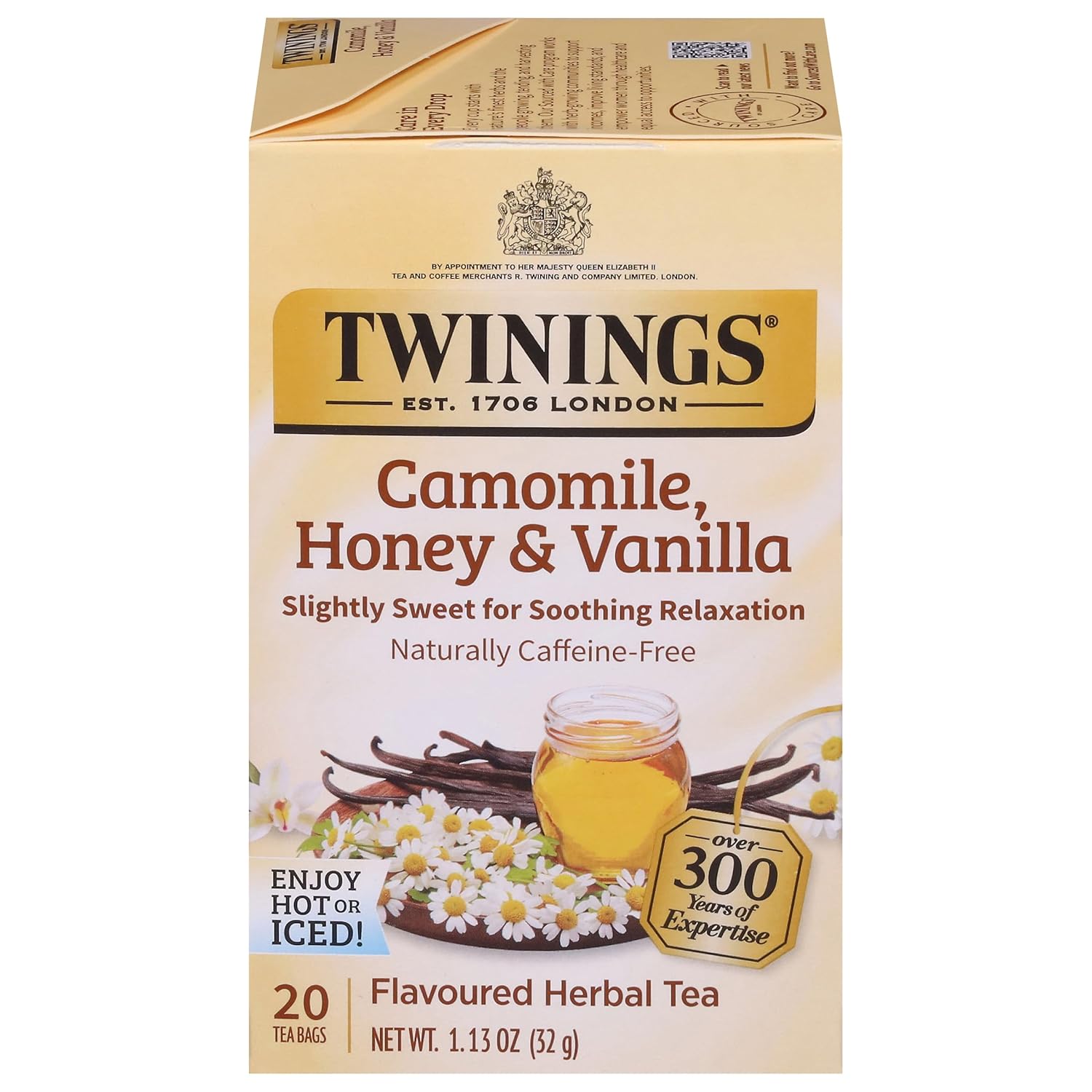Twinings Camomile, Honey & Vanilla Herbal Tea individually Wrapped Bags, 20 Count (Pack of 1), Naturally Caffeine-Free, Enjoy Hot or Iced, 20 Teabags