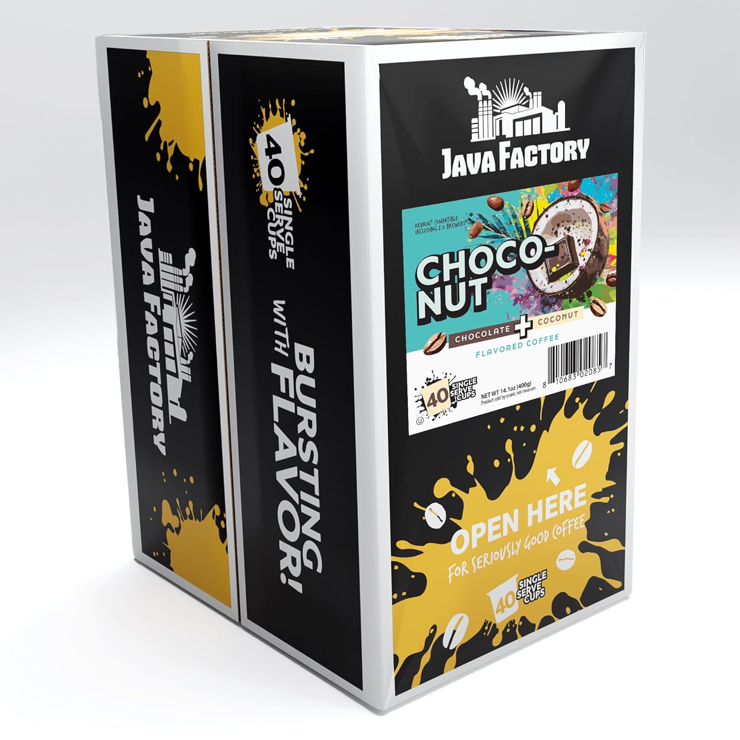 Java Factory Coffee Pods Choconut, 40 Count - Chocolate Coconut Flavored, Compatible with Keurig K Cup Brewers, Tropical Delight for Coffee Lovers