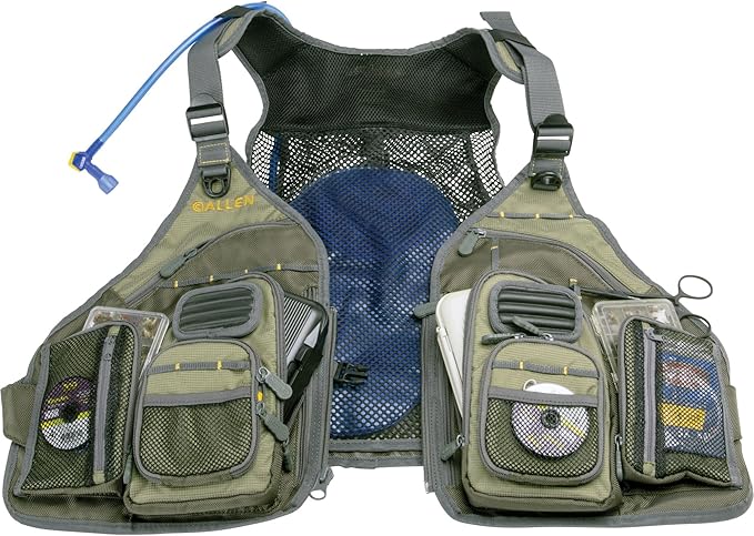 Allen Company, Big Horn Fishing Chest Vest with MOLLE Web Gear Lash, with Hydration Storage Pocket, Fishing Outdoor Gear, Olive, Medium (6346)