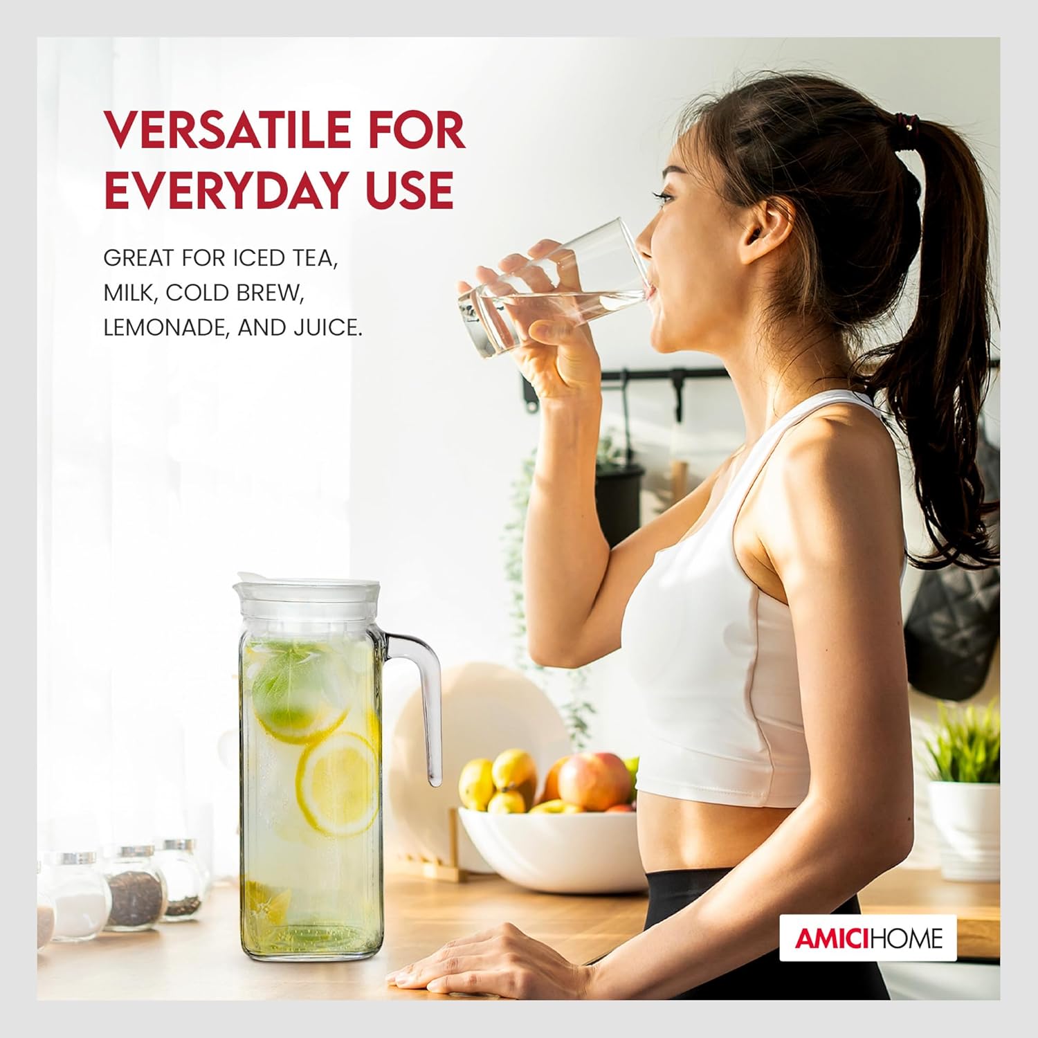 Amici Home Italian Igloo Quadra Glass Pitcher with Lid and Spout | 34 Ounce | Clear Glass Water Pitcher for Refrigerator | Carafe for Iced Tea, Juice, Milk, Cold Brew and Mimosa Bar