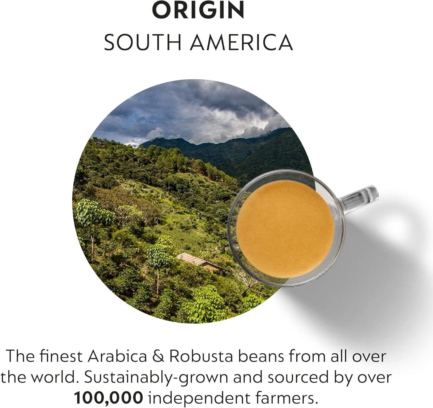 - COFFEE BLEND: Brazilian Guatemalan Robusta and South American washed Arabica. Nespresso Intensity 12. Exceptional intensity, rich in roasted notes, powerful bitterness with notes of pepper.