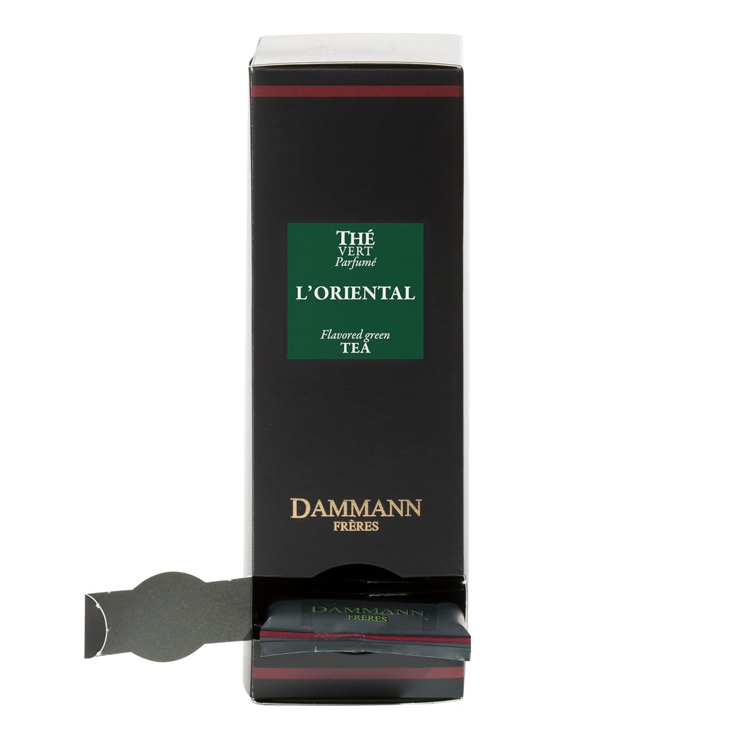 Dammann Freres Sachets, L'Ôriental Tea Bags, Premium Gourmet French Green Tea, Blend Passion Fruit, Peach, Strawberry Flavors, Individually Wrapped, 24 Count (Single Pack)