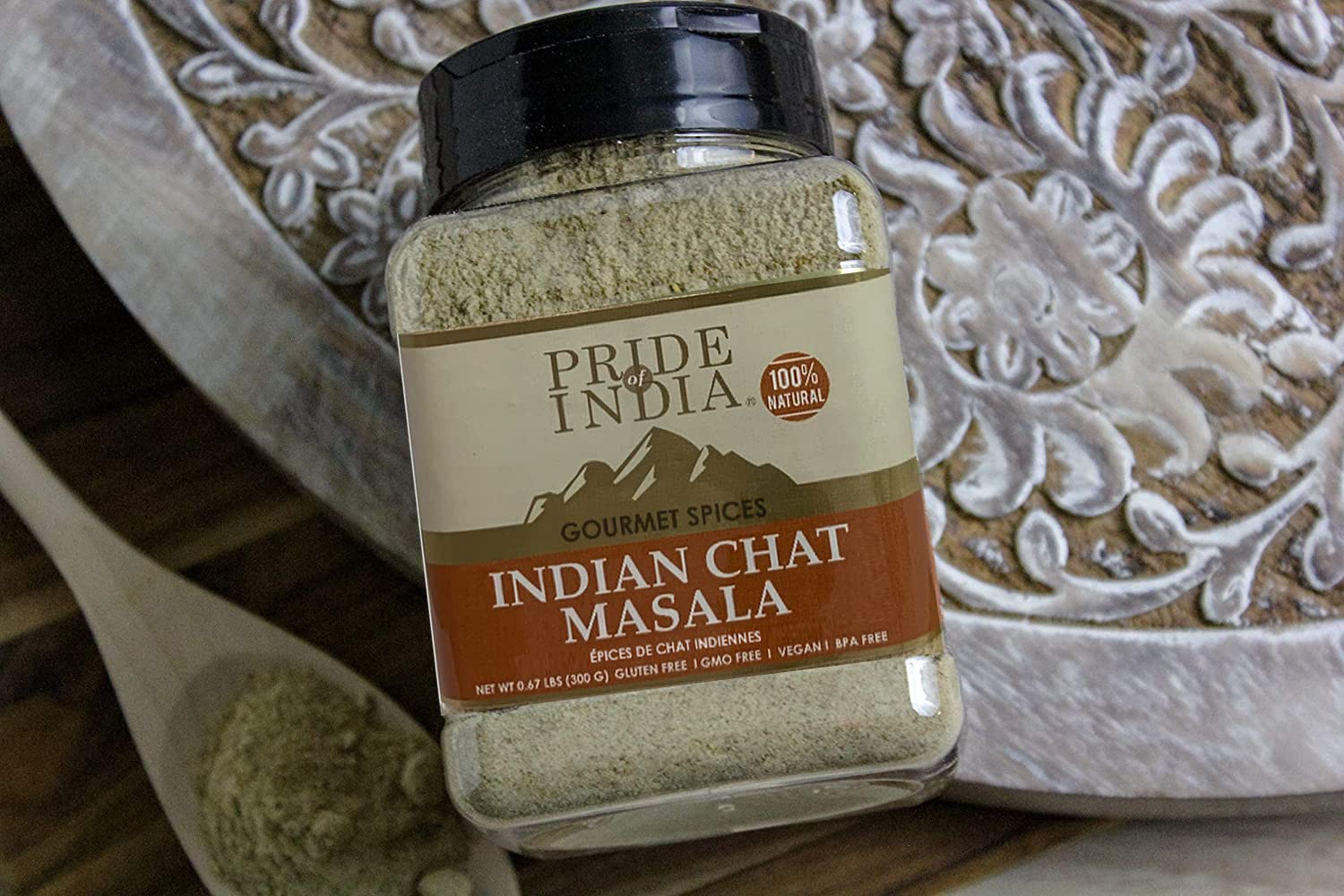 Pride of India – Indian Chat Masala Seasoning Spice – Ideal for Savory Dishes – Perfect Seasoning for Drinks/Salads/Fruits – Preservatives Free – Easy to Store – 8oz. Medium Dual Sifter Jar