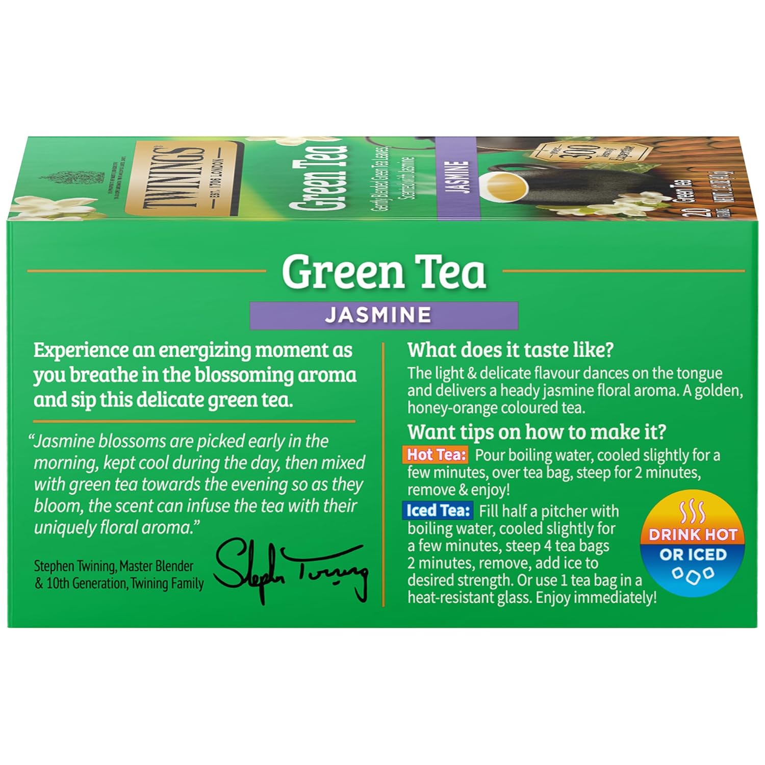 - TREAT YOUR SENSES: Expertly blended Green tea infused with real jasmine flowers for a unique floral aroma and taste; Caffeinated, 20 Count, Pack of 1