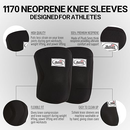 Schiek Sports Model 1170 Knee Sleeves - 5mm Neoprene Knee Compression Sleeves for Weight Lifting