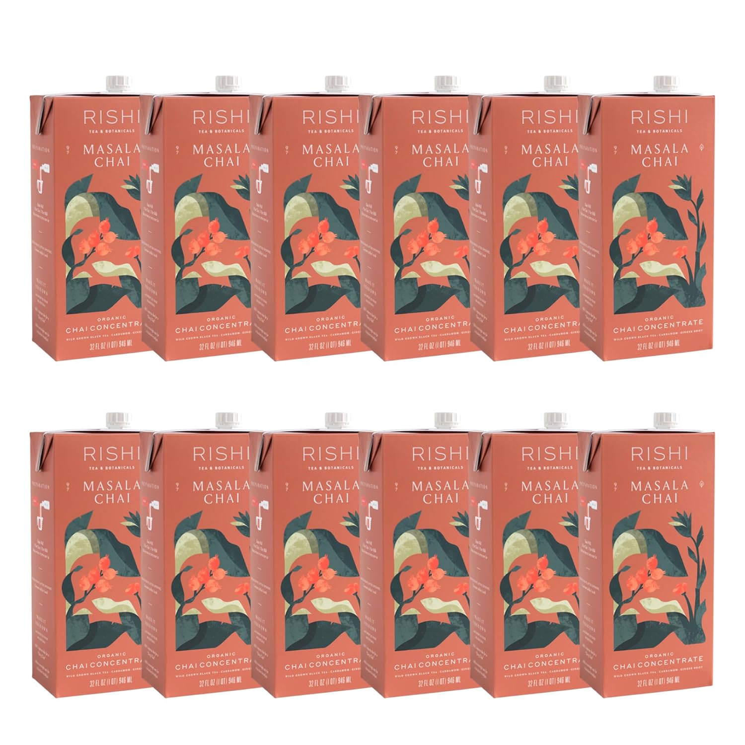 Rishi Tea Masala Chai Latte - Organic Black Tea Concentrate, Easy-to-Serve Hot or Iced Chai Mix - 32 fl oz Carton, 8 Servings (Pack of 12)