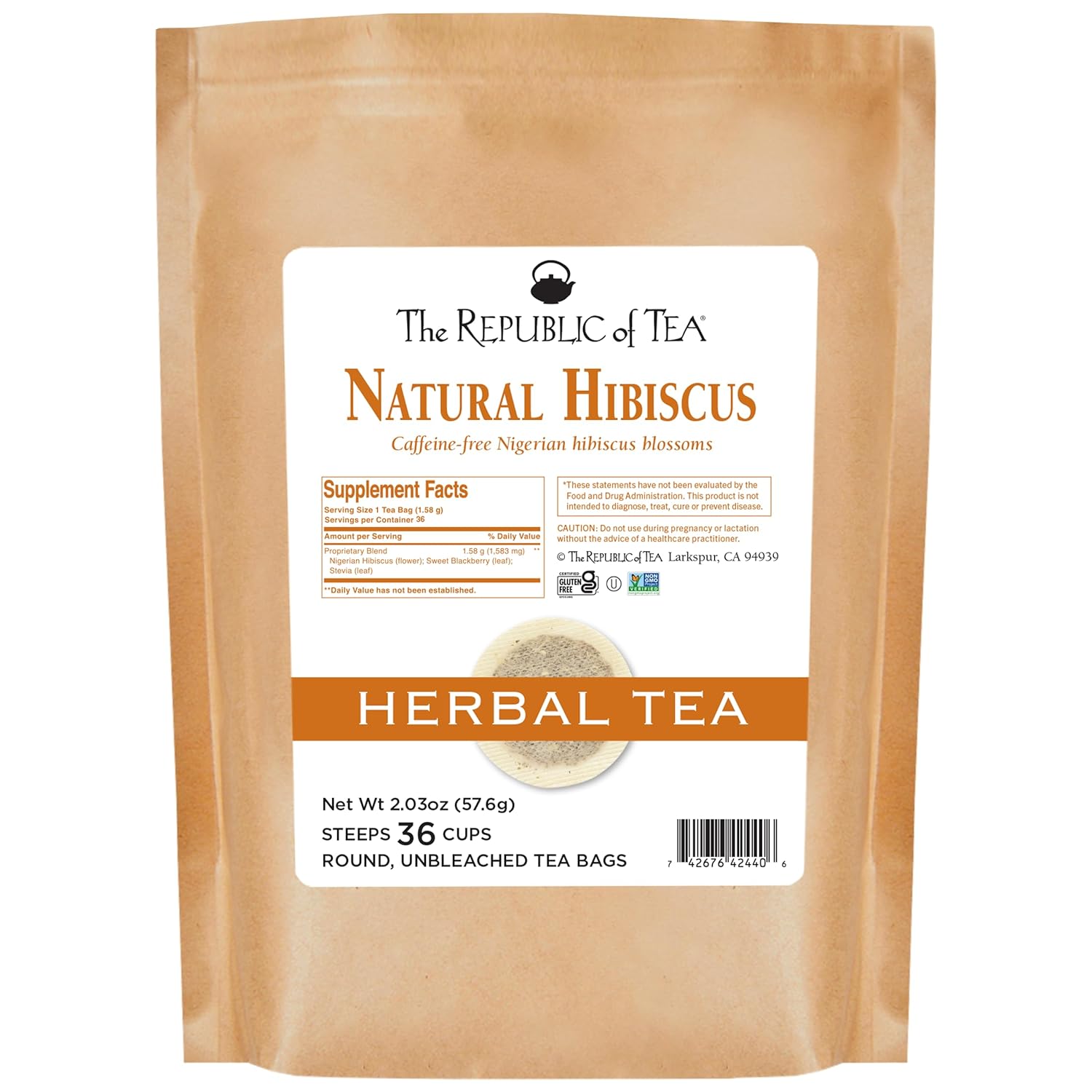 The Republic of Tea Natural Hibiscus Superflower Herbal Tea, Ruby Red Hibiscus Fine Blend, 36 Tea Bag Refill