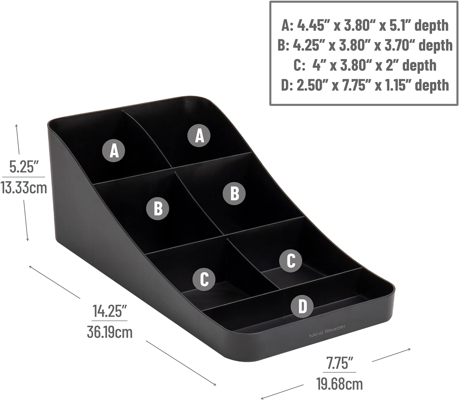 - Perfect dimensions: Measuring 15.5 inches deep x 7.25 inches wide x 5.25 inches tall (39.37 x 18.42 x 13.34 centimeters), this 7-compartment condiment organizer slides smoothly into even the smallest spaces, keeping your coffee condiments neatly stored