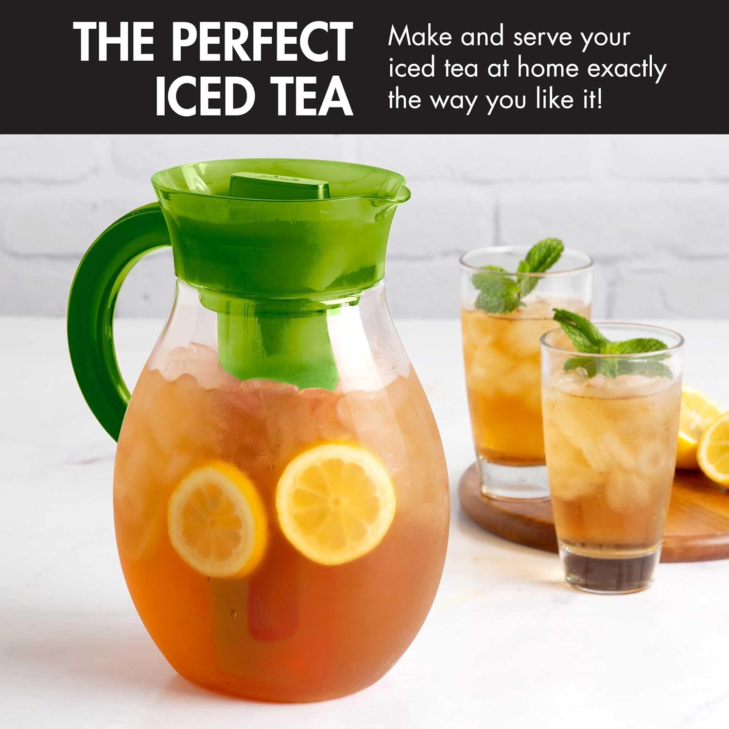 Primula The Big Iced Tea Maker and Infuser, Plastic Beverage Pitcher with Leak Proof, Airtight Lid, Fine Mesh Reusable Filter, Made without BPA, Dishwasher Safe, Green