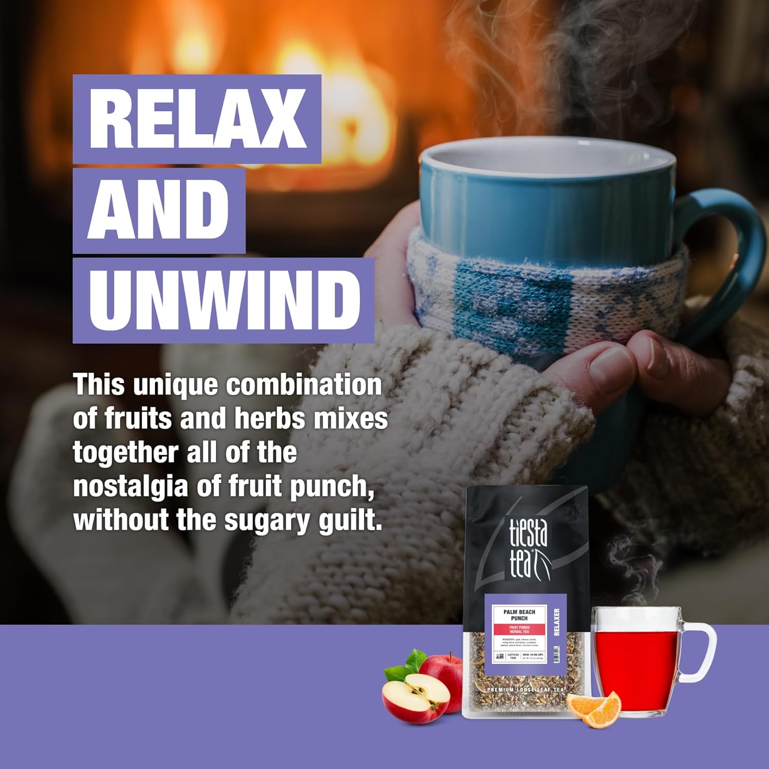 - FRUIT-FORWARD HERBAL TEA: Enjoy a refreshing tea experience with Tiesta Tea’s Palm Beach Punch. This caffeine-free blend combines apple, hibiscus, and orange with hints of lemongrass and eucalyptus, creating a naturally sweet and flavorful tea that’s great hot or iced.
